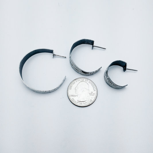Greater Love Sterling Silver Woodgrain Hoop Christian Earrings
