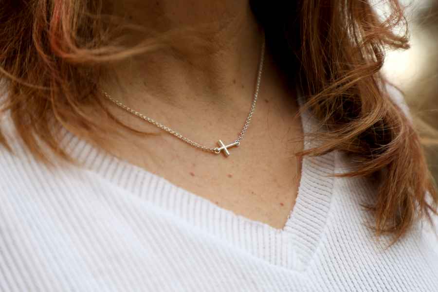 Greater Love Sterling Silver Sideways Branch Cross Necklace