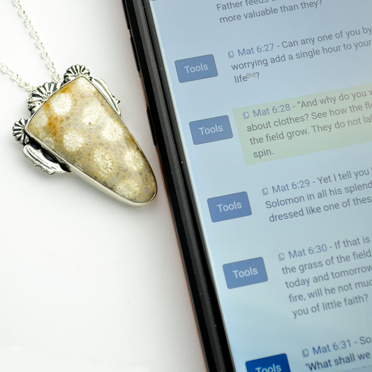 Flowers of the Field 1 Sterling Silver & Fossilized Coral Necklace
