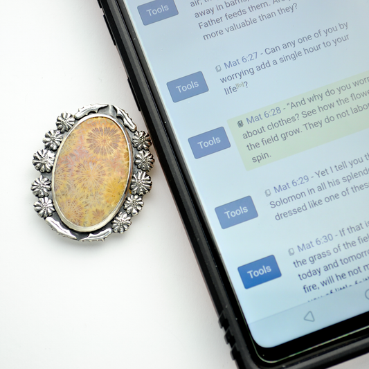 Flowers of the Field 2 Sterling Silver & Fossil Coral Brooch and Pendant