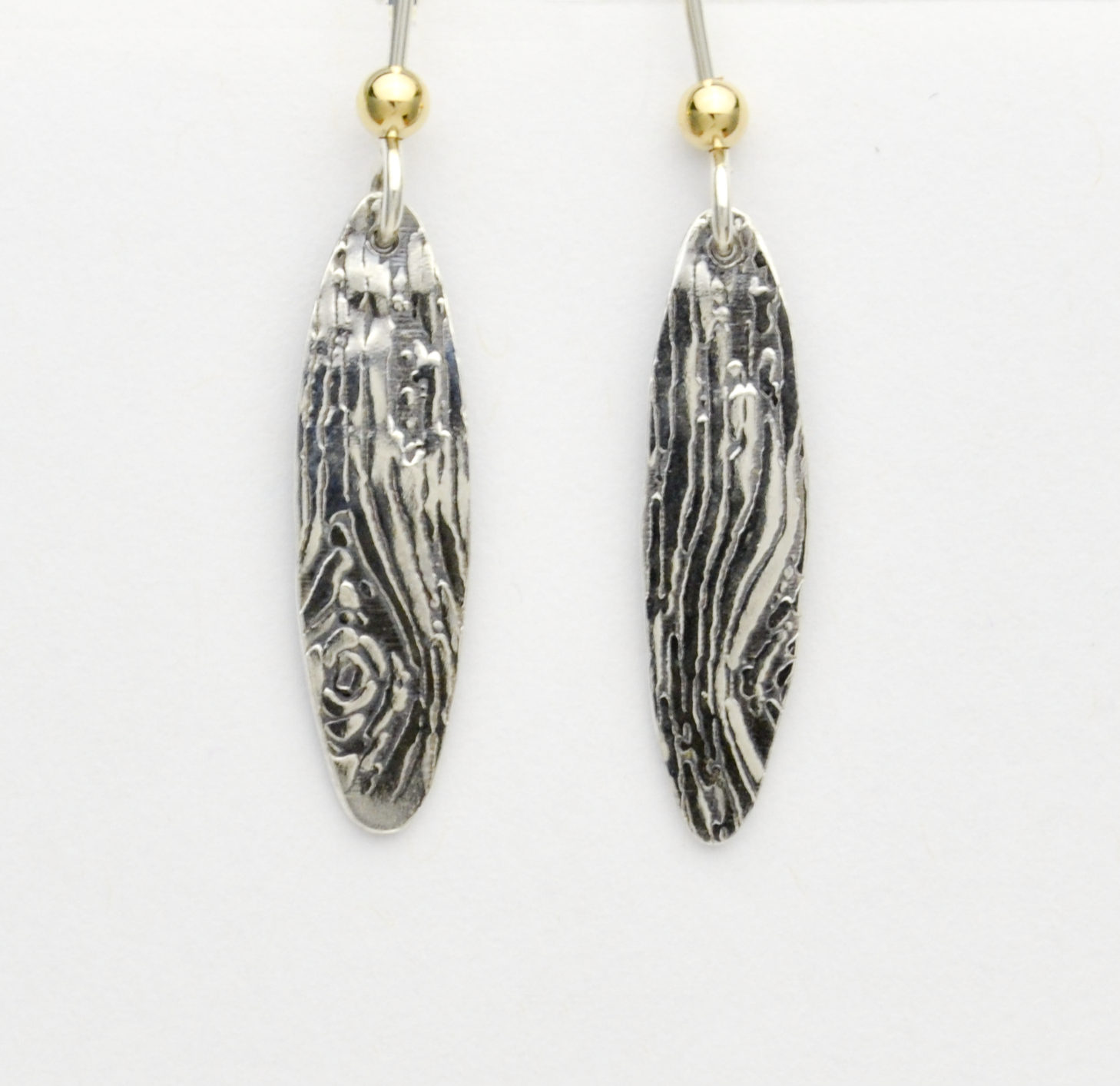 - Sterling silver woodgrain dangle earrings
