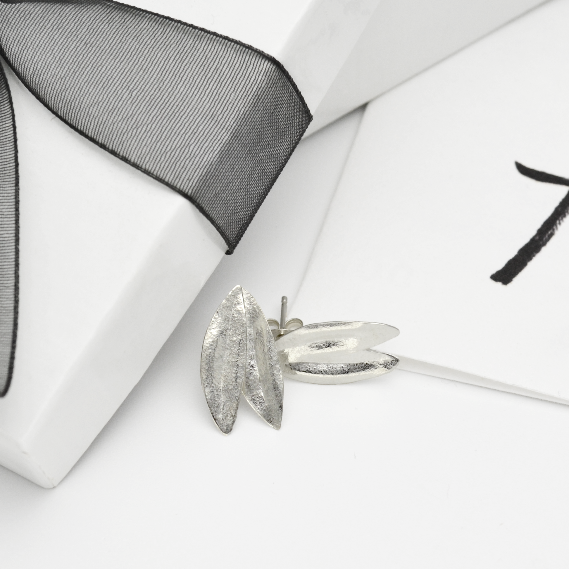Peace Small Olive Leaf Stud Earrings in Sterling Silver
