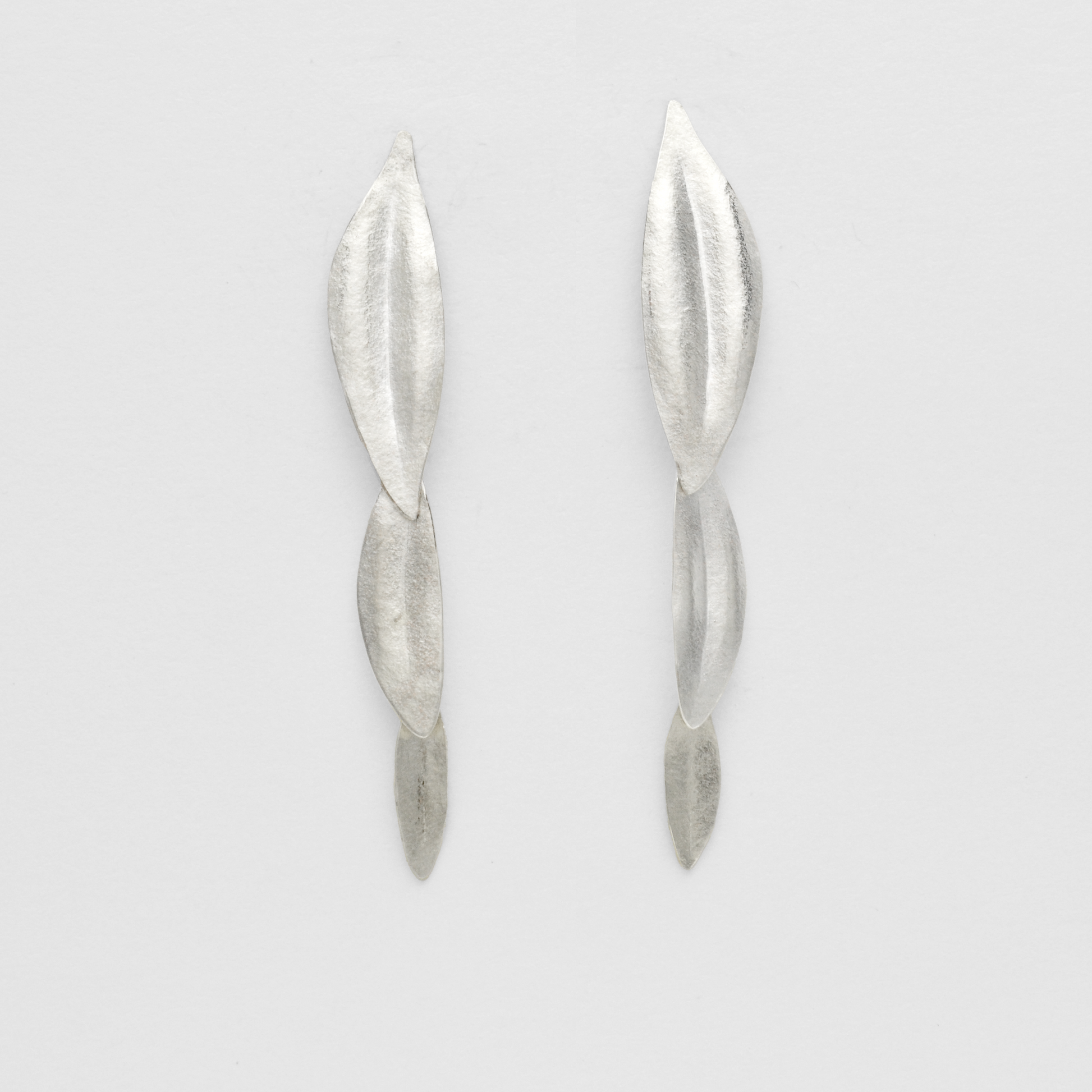 Peace Three Olive Leaf Dangle Earrings in Sterling Silver